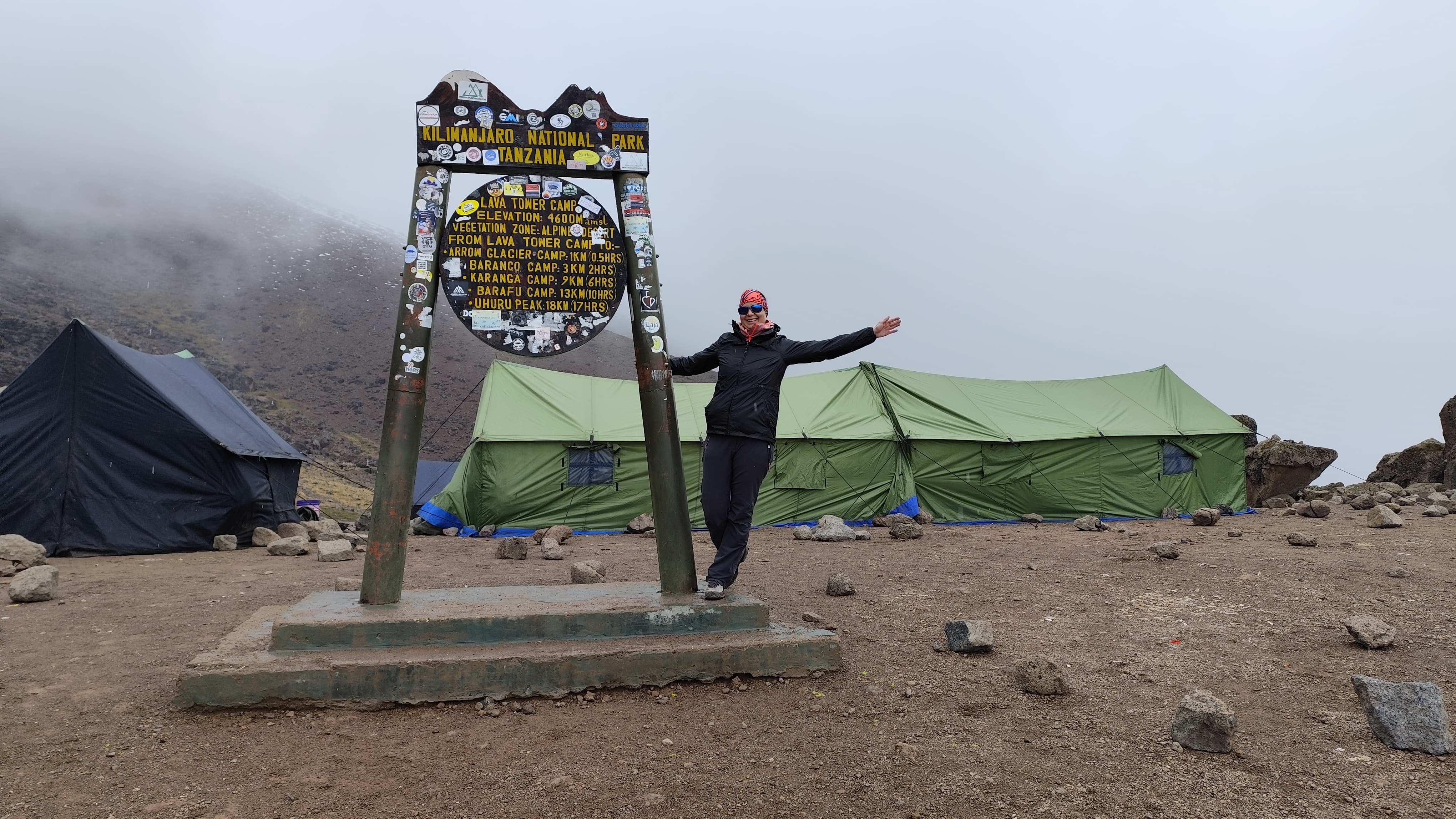 Und ehe ich mich versah, waren wir oben. Am Lava Tower auf 4.600 Meter. Wir machten eine kurze Pause und aßen unser Lunchpaket. Mir ging es gut. Ich hatte keine Kopfschmerzen, nahm weiterhin viel Flüssigkeit zu mir. Immer wenn sich mal ein Druck oder leichter Schmerz andeutete, trank ich einfach noch mehr Wasser und es verschwand wieder. Was ich allerdings deutlich merkte, war der schwindende Appetit. Ich hatte keinen richtigen Hunger mehr, wusste aber, dass ich essen musste. Der Körper brauchte Energie. Ich brauchte Kraft, um weiterzugehen. Um die nächsten Tage zu überstehen, um am Gipfel anzukommen.