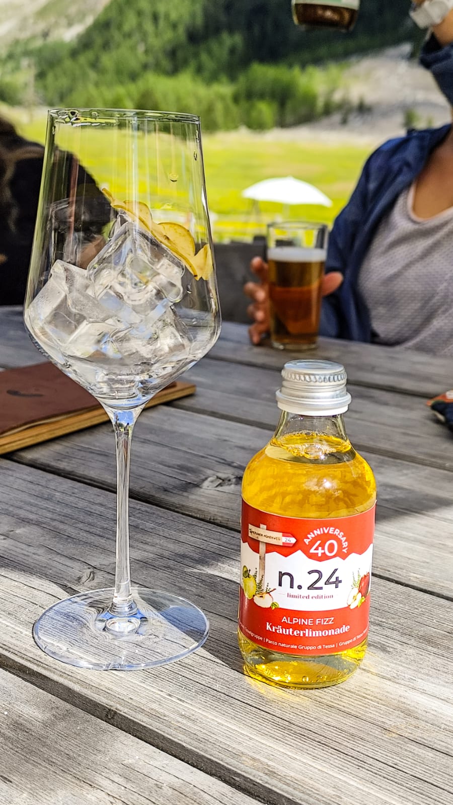 Der Tourismusverein Partschins hat dafür sogar eine eigene Kräuterlimonade mit dem Namen N.24 entwickelt – benannt nach der Wegnummer des Meraner Höhenwegs. Diese Limonade haben wir heute am Ende der Etappe am Eishof getrunken.